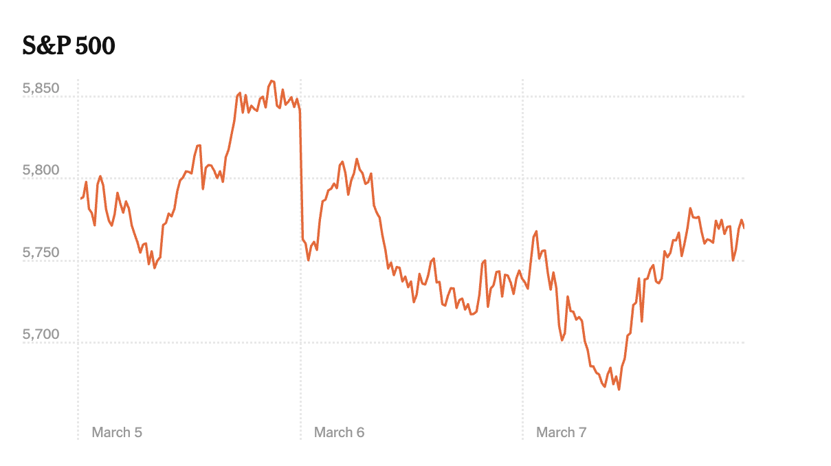 Trump's implementation of tariffs on imports from Canada, Mexico and China on March 4th is a classic stagflationary shock. These trade measures—which Warren Buffet characterizes as akin to a declaration of war—push up prices for consumers. They also act as a headwind to economic growth by disrupting trade and potentially leading to retaliatory measures. Indeed, all countries targeted by Trump's tariffs have threatened to retaliate. The stock market reacted violently this week to America's assault on global trade, with major indices edging deep into red territory during the week, which the announced 30-day tariff reprieve on the following day did little to reverse.